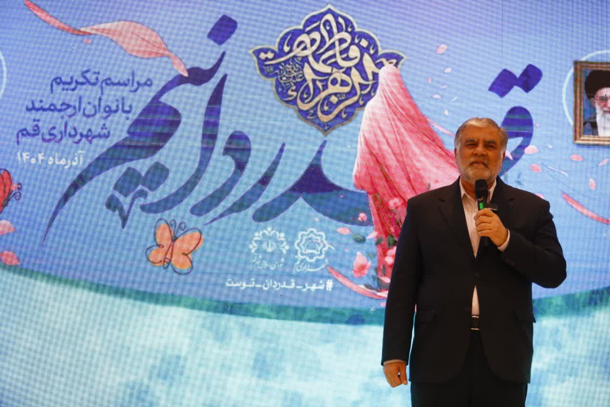شهردار کلانشهر قم با تبریک میلاد حضرت زهرا(س) و روز زن، نقش بانوان را در ایجاد آرامش خانواده و ارتقای فضای کاری مؤثر دانست و بر قدردانی مدیریت شهری از تلاش آنان تأکید کرد.