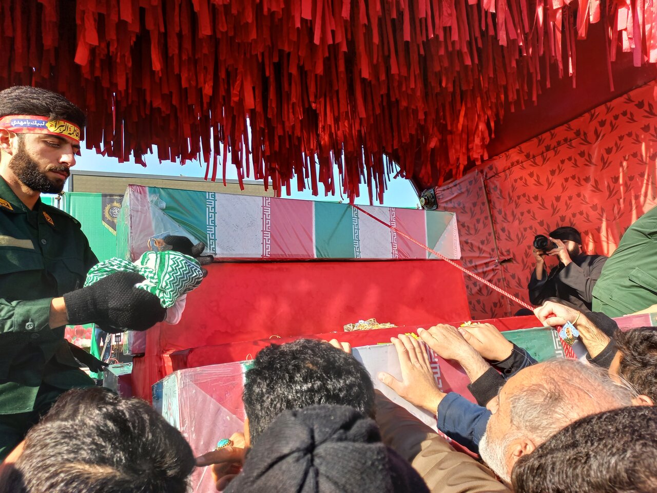 جمعیت به نزدیکی گلستان شهدا میرسد و عدهای با چشمهای منتظر در این نقطه منتظر کاروان اهالی بهشت هستند و در میان این انتظارها بود که صدای روضه خوانی شهید تورجیزاده در میان جمعیت میپیچد.