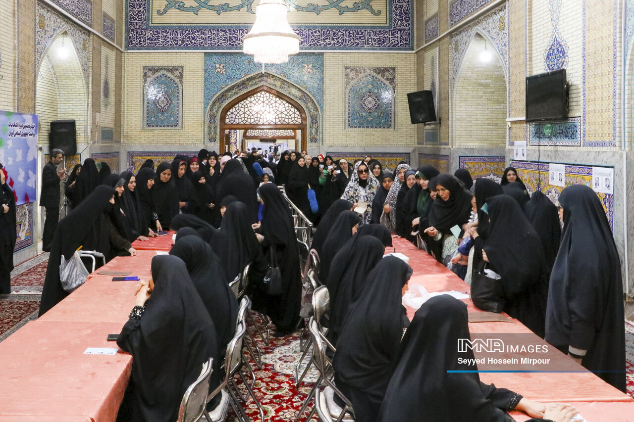 شکلگیری صف رأی در شعبه اخذ رأی گلستان شهدای اصفهان