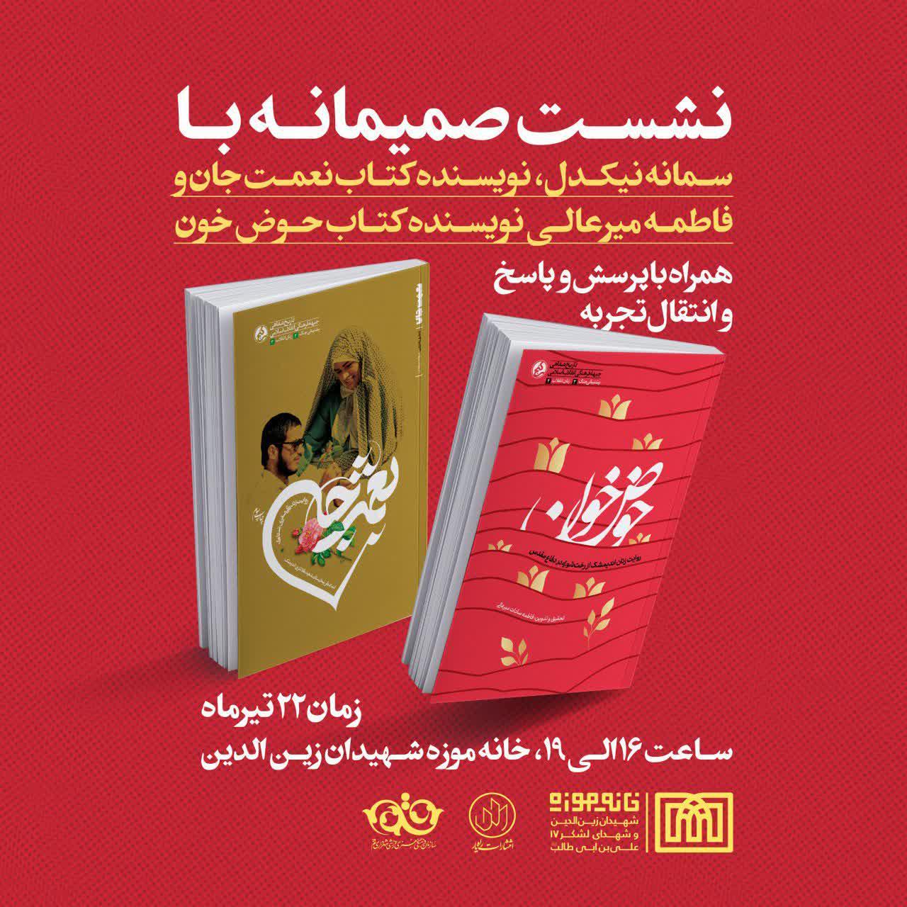 به گزارش پردیسان آنلاین، این برنامه صمیمانه با حضور سمانه نیکدل نویسنده کتاب «نعمت جان» و فاطمه میرعالی نویسنده کتاب « حوضخون» ترتیب خواهد یافت. پرسش و پاسخ به همراه انتقال تجربه در نگارش محتوای ارزشی از اهداف این نشست است.