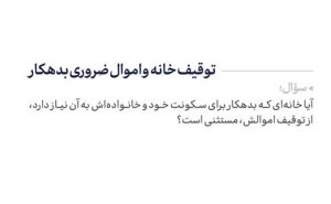 رهبر معظم انقلاب به استفتائی پیرامون «توقیف خانه و اموال ضروری بدهکار» پاسخ گفتند.