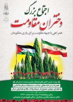 اجتماع باشکوه «دختران مقاومت» با حضور پرشور دختران عضو کانونهای فرهنگی هنری مساجد استان قم، عصر روز پنجشنبه ۹ مرداد ۱۴۰۴ در سالن شهید سردار سلیمانی مسجد مقدس جمکران برگزار خواهد شد.